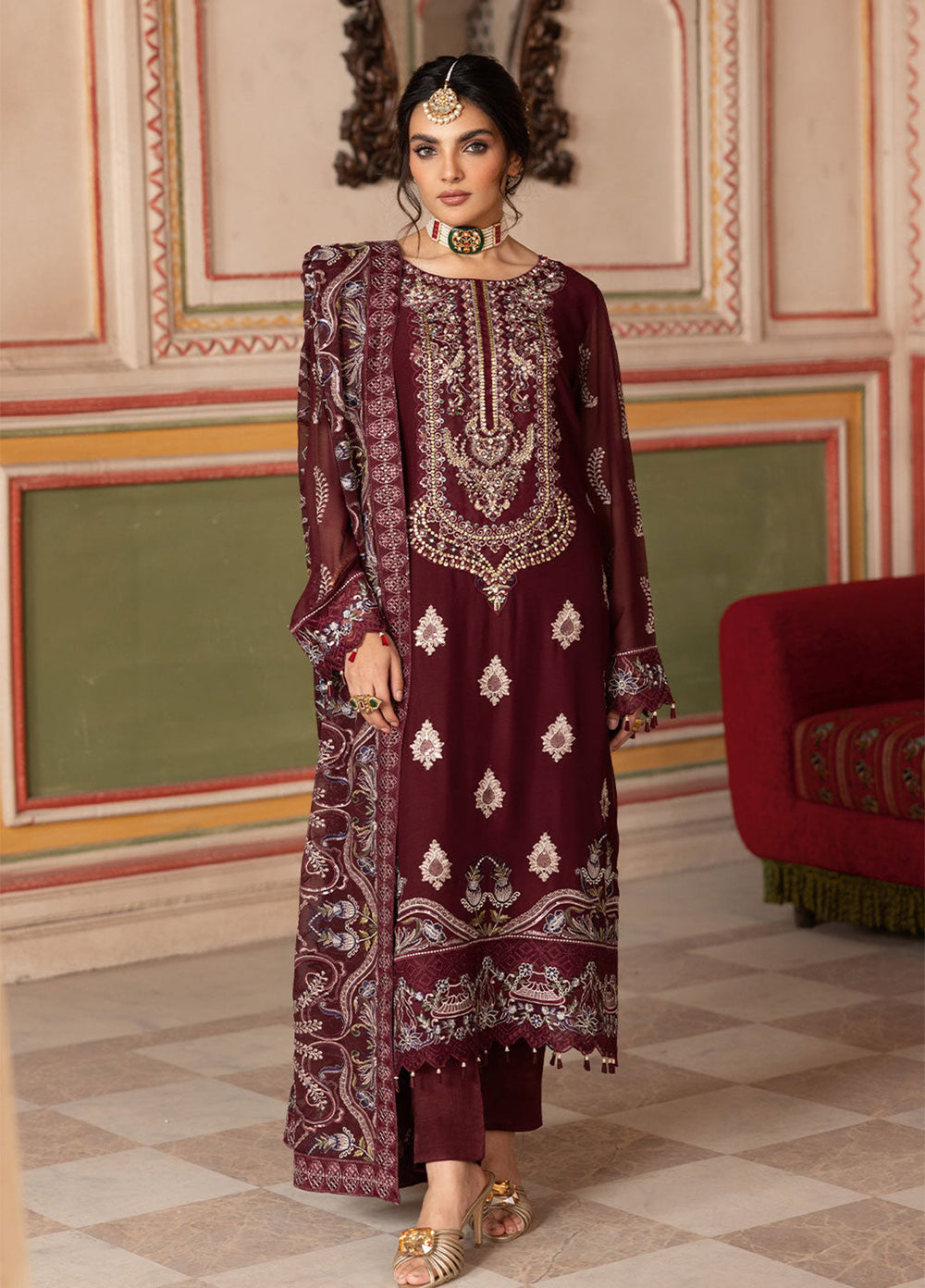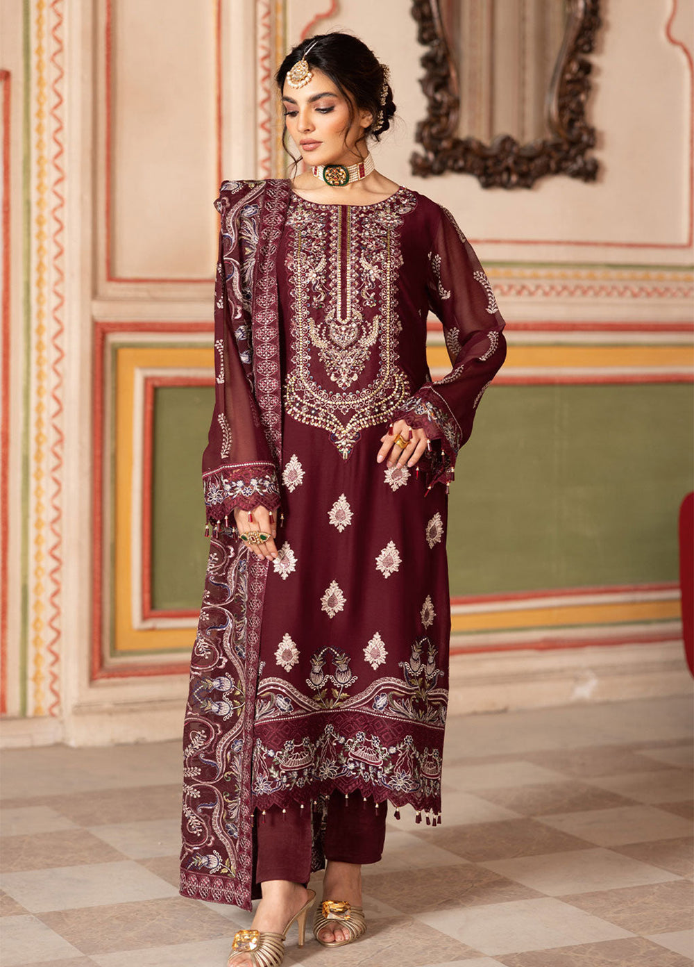 Embroidered Chiffon Front with Sequence