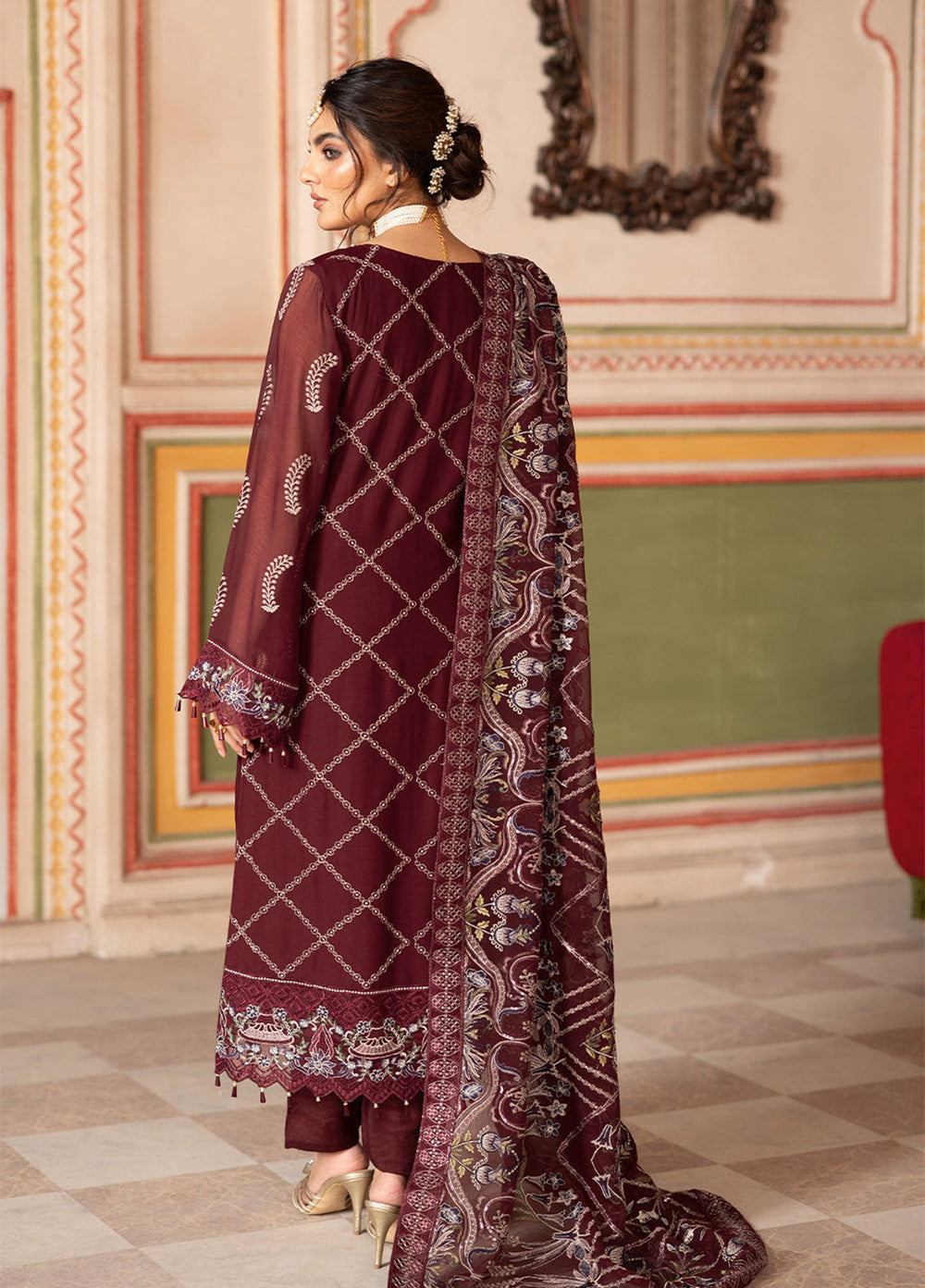 Embroidered Chiffon Back